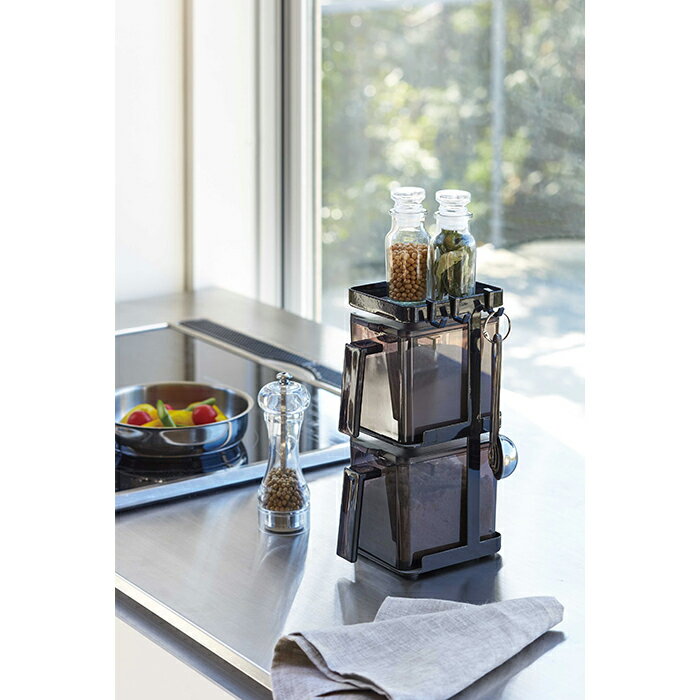 調味料ラック 3段 スリム タワー ブラック 03610 | 山崎実業 YAMAZAKI おしゃれ 小麦粉 容器 立て 収納 砂糖 塩 シュガー ソルト ポット キッチン 一人暮らし インテリア スタイリッシュ かわいい 便利 シンプル TOWER スタンド トレイ スパイス