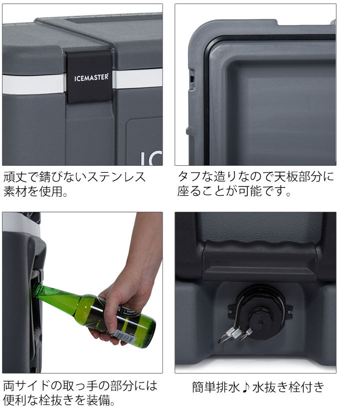 また、ドレン付きで、クーラー内の水抜きや洗浄時に便利です。